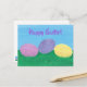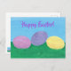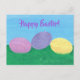 Söt Påskägg som lägger sig i gräset trycks på vykort för anpassningsbar. De färgstarka äggen är rosa, lila och gult. Varje ägg är ett annat färg och innehåller blandningar. Ett söt blå himmel ligger i bakgrunden. Glad påsk är skrivet i lila över blå himmel. Texten kan enkelt anpassas till din egen hälsning. Tack för att du shoppade på CherylsArt på Zazzle.
