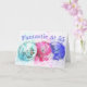 Det här "Fantastiskt vid 55" födelsedag-kortet har tre vattenfärgade tropiska drinkar paraplyer i teal, rosa och lila på omslaget. Det finns hälsning i mallen längst upp och grund. Anpassa malltexten till fälten med din information eller ta bort text om du vill ha en tom text inuti.