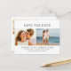 Modern och färsk design visar tre av dina foton. Två mindre foton skapar ett band genom mitten av ditt vykort för datum. Ett annat foto placeras på baksidan över ett personligt meddelande. Returadressen medföljer om du vill. Slabserif-texten ge ger kortet dess moderna och höftliga vibe. All text kan redigeras. Mycket enkel mall för använda.