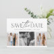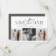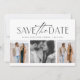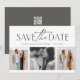 Det här enkla men stilrena fotot spara datum-kortet är det perfekta sättet att meddela din förlovning och kommande bröllop till vänner och familj. Framsidan av detta spara datum-kort har en modern typografi i svart ovanför en collage av tre foton. Baksidan är en chic kolgrå färg med plats för ett anpassat meddelande, signatur och en QR-kod till er bröllopswebbplats. Detta originella spara datum-kort från Lea Delaveris Design är en del av en samling där du kan hitta fler färger och stilar. Detta finns även tillgängligt som digital nedladdning för spara datum.