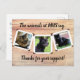 Vykort med animala fotomallar på framsidan och två linjer anpassningsbar text. Som ett "tack" från djuren på en härbärge eller rädding. Bakgrunden är träkornets utseende och varje foto är inramat i vitt med gammaldags hörntabbar. Omvänd är tomt. Byt ut katten och hund mot dina egna foton. Som en sidoanmärkning antogs alla visade djur som medlemmar av min egen familj.
