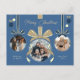 Sprid helgdag cheer med detta festliga vykort med handritade kort visar att krona tre av dina favoritfoton i cirkulärt ramar - skapande utseendet av festliga julprydnader. vykortet för elegant blue och kräm innehåller "God jul i ett handskrivet skriptteckensnitt och din anpassningsbar-familj namn. På baksidan kan du lägga till ett anpassningsbar- och en returadress.