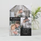 De här moderna bröllopsinbjudningarna har en mörk, svart bakgrund med elegant, vit manustypografi. Lägg till tre av dina favoritfoton för ett enkelt utseende och en snyggt.