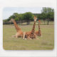 Fotografi av tre giraffe som vilar tillsammans på Fossil Rim Wildlife Center i Glen Ro, Texas.
