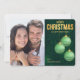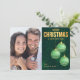Ditt favoritfoto är det som finns på det här platta julkortet för söt. Fotot på framsidan gränsas av en bild med tre gröntar och vit chevron stripe träd lökar hängande mot en mörk grönt bakgrund. Bilder i snöflingor gör ett subtilt intryck i bakgrunden. Den stiliserade guld-texten längst upp säger "GOD JUL & GOTT NYTT ÅR". Er anpassningsbar är i två delar lätt att byta fält vid grund. Baksidan av detta elegant-kort är solid matchande grönt.