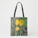 Vi var ute för en morgonpromenad och var bara tvungna att ta en bild av denna vackra massa tulpaner. Nestad av en träd, den enda klampen stod ut med sin briljanta gult färg med en aning rött rand. Gräet är fullt av morgondagg, med några daggdroppar också på löven. Njut!