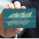 Det här unika, naturinspirerade visitkortet har tre gyllene blad, lutande i en vinkel, med ditt namn i guld. Bakgrunden är en lugnande, bladrik tealgrön färg. På framsidan visas ditt namn och titel i en ruta som ligger över bladen. På baksidan visas din e-postadress, namn och telefonnummer högst upp i större typsnitt, med din adress, webbplats och andra detaljer längst ned. Två små gyllene blad ger accenter högst upp. Mallen gör det enkelt att mata in din text, och du kan blanda vilka detaljer du vill ha med och var, eller så kan du välja att ytterligare optimera färger och placering.