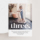En enkel inbjudan från tredje födelsedag med ditt eget foto och ord "tre" överst, tillsammans med ett hjärta. Du kan redigera hela texten plus färg i texten och hjärtat.