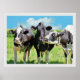 Linda Baysinger Pecks digitalt utökade painterly, osmakade utseende fotografi av tre svarta och vita Holsteinkor i en gräsbevuxen betesmark, med ett kornfält och blå himmel med vita moln bakom sig. Korna äter gräs och den ena tror att den andra komans gräs är bättre. Beautifil land. © Linda Baysinger Peck Med ensamrätt.