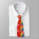 Den här designen har tre hjärtan i gult, blå och röd. En svart kontur ligger på hjärtat. En mängd blommor omger hjärtan. En ljusröd bakgrund lades till. Den här slips kan bäras av en man eller kvinna.