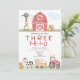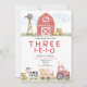 Gör dig redo att fira din lilla enes speciella dag nere på gården med vår förtjusande "Three-i-e-i-o" födelsedagsinbjudan! Perfekt för ditt barns tredje födelsedag, har denna charmiga inbjudan en söt gårdsscen komplett med söta djur, en klassisk röd lada och frodiga gröna fält.