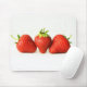Tre jordgubbar på vit får musmatta