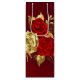 Sammansättningen av två artificiellt målade röd ros och ett guldfärgat ro, dekorerat med guld, jewel löv på texturerad bakgrund.