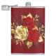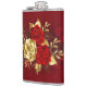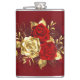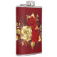 Sammansättningen av två artificiellt målade röd ros och ett guldfärgat ro, dekorerat med guld, jewel löv på texturerad bakgrund.
