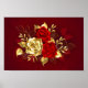 Sammansättningen av två artificiellt målade röd ros och ett guldfärgat ro, dekorerat med guld, jewel löv på texturerad bakgrund.