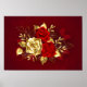 Sammansättningen av två artificiellt målade röd ros och ett guldfärgat ro, dekorerat med guld, jewel löv på texturerad bakgrund.