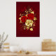 Sammansättningen av två artificiellt målade röd ros och ett guldfärgat ro, dekorerat med guld, jewel löv på texturerad bakgrund.