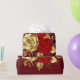 Sammansättningen av två artificiellt målade röd ros och ett guldfärgat ro, dekorerat med guld, jewel löv på texturerad bakgrund.