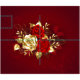 Sammansättningen av två artificiellt målade röd ros och ett guldfärgat ro, dekorerat med guld, jewel löv på texturerad bakgrund.