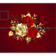 Sammansättningen av två artificiellt målade röd ros och ett guldfärgat ro, dekorerat med guld, jewel löv på texturerad bakgrund.