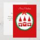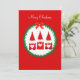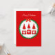 Söt julgnom och tallkranz på röd julhälsningskort. All text är redo att anpassas.