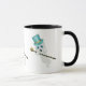 Kaffet eller teet mugg har tre roligtar vit spöken med ljusblått ögon med blå top hat med guld rosett band och med guld accenterade svarta käppar fyllda med en guldskalle.
