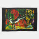 Vackra och skarpa färgader på målarduk av den tyske konstnären Franz Marc med titeln "Three Cats". Katten i förgrunden är svart och vit och står på framsidan av tassar med baksidan av ben i luft, medan en gult katt och en stor rödkatt står i bakgrunden. En underbar kombination av , grönt, gult och lila. Slutdatum: 1913.