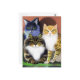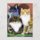 vykort i ett porträtt av tre katter med allvarlig attityd - dessa killar menar allvar - en rysk blå, en brun och vit perser, och en orange och vit randig tabby