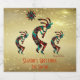 Anpassa den här "Ett av ett slag"-etiketten för sydvästra julen, mousserande vin! Den har tre sydvästra Kokopelli som dansar och spelar ut flöjten under Sol på en Guld-julbakgrund! Det här är en originalkonstform av konstnären Kerry Miller.
