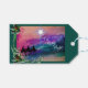 Vackra vattenfärgsscenen med silhuetten från de tre Kung som färdas till den nyfödda Jesus. Religiösa julkort som proklamerar Kristus födelse.