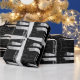 Tre kung-julstjärnornas monokroma sammandragning presentpapper