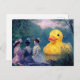 En lustig historisk målning i stil av tre kvinnor sitta från sjö med en picknic med ett gigantiskt anka i parken AI skapade konst