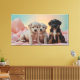 Tre goda valpar sitter tillsammans på en plysfilt. Den lekfulla atmosfären förbättras av mjuk belysning som skapar en varm och inbjudande bakgrund, och som betonar deras lyhördhet.