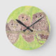 Tre lille Scowling Uggla - akrylmålning. Rund Klocka