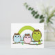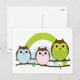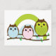 Tre söta uggla sitta vid träd gren, var och en lite annorlunda storlek och färg.