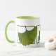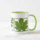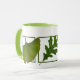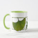 Tre löv över hela mugg skapar en tyst stämning. Bilder från en ginkgo löv, ekar löv och en apel löv.