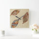Tre Löv på Linen Struktur-bakgrunden Fyrkantig Klocka
