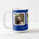 Fotogåvamuggen för pappa eller morfadern i marinblått med tre inramade fotomallar för bilder av ungarna/barnbarn. Tillfoga ett personligt meddelande, liksom "grattis på födelsedagen", eller "älskar vi dig" under fotona.