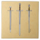 Ett normanskt svärd med en brasiliansk pommel från nöt, ett Underbart svärd eller ett ord från Krig från 1300- eller 1400-talet, och ett starkt spetsigt haksvärd från de sena Mitten-åldern visas sida vid sida i Richard H. Fays ursprungliga illustration.