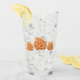 Tre persikopumpor med orange och bruna splotsar. Stammarna är lindriga och det finns orange och löv på båda sidor om stjälken. Mittpumpen är den största och de andra två är medelstor storlek och på vardera sidan av mittpumpen.