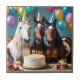 Tre Piebald Horses Födelsedagsfest. Kakelplatta