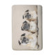 Tre Puggar lägger sida vid sida och alla lutar åt samma håll.