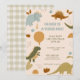 Tre Rex dinosaur födelsedagsinbjudan, inbjudan till 3-års födelsedagsfest designad för en rolig och äventyrlig firande. Med lekfulla dinosaurier i gröna och ljusblå nyanser är denna design perfekt för små dinosaurieälskare som fyller tre år.