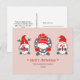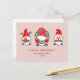 Tre roliga tomtar från nordisk folktradition pryder dessa söta högtids- och festkort i röd och grå ton mot en ljusrosa bakgrund.