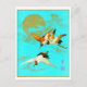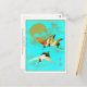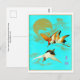 Tre saruskran som flyger framför måne vykort
