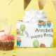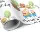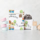 Den här barnen av anpassningsbar som innehåller pappra inslag är ett färglöst barn- och sagatema. De tre små grisarna från den klassiska sagolen visas i närheten av deras hutar av halm, pinnar och tegelstenar. Vargen Big Bad ses smyga in i avstånd. Ett exempel på Grattis på födelsedagen skrivs ut ovanför illustrationen och ett exempel på namn skrivs ut nedan med ett svartvit typsnitt. Du kan anpassa presentfigursättningen så att den innehåller ditt eget eget namn eller egen text.