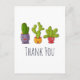 Ett roligt tackkort med en fantasifull illustration med 3 glada små kaktusar som sitter i sina egna blomkrukor. De har alla sina egna unika uttryck som ler och ser glada ut.