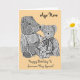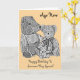 Den svarta och vita stilla nallen bild på detta hälsningskort är färgad och den här bilden har digitalt förbättrats till ge och har en enfärgad graverad effekt. I den ursprungliga färg-målningen är de tre söta färgerna blå och gult och nallarna är sitta på en blå och vit picknick trasa. Teddy bild ser underbar ut mot persikobakgrunden. De tre söta björnarna kommer från min egen teddysamling, de blå björnarna namn är "Charlie björn", den större björnen kallas "lilla Barbara Bear" och den lilla tonåringen..Jag hade ingen namn för honom, men jag minns att han bara hade ett öga. Det här söta hälsningskortet för svart och vit nalle har ett kort-meddelande som passar för att skicka till alla. Det här är en hälsning--anpassade, du kan lägga till mottagarens ålder och du kan ändra text och bild till något du själv väljer om du vill.