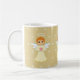 Vacker mugg med tre söta små änglar med stjärnmönster på beige bakgrund.