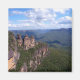 Tre systrar, Blue Mountains, NSW, Australien. Helt anpassade. De tre systrarna är en bildning av sten i de blå bergen i New South Wales, Australien. De ligger nära staden Katoomba och är en av de mest kända platserna i de blå bergen, som vandrar över Jamison Valley. Deras namn är Meehni (922 m), Wimlah (918 m) och Gunnedoo (906 m). Sisters bildades genom erosion. Den mjuka sandstenen i de blå bergen eroderas lätt med tiden av vind, regn och floder, och klipporna runt Jamison Valley bryts långsamt upp. Formeringar som de tre systrarna skapas när vatten går in i små sprickor i sten och gradvis utökar dem med tiden för att bilda stora indrag. Så småningom kommer systrarna att eroderas helt och hållet.